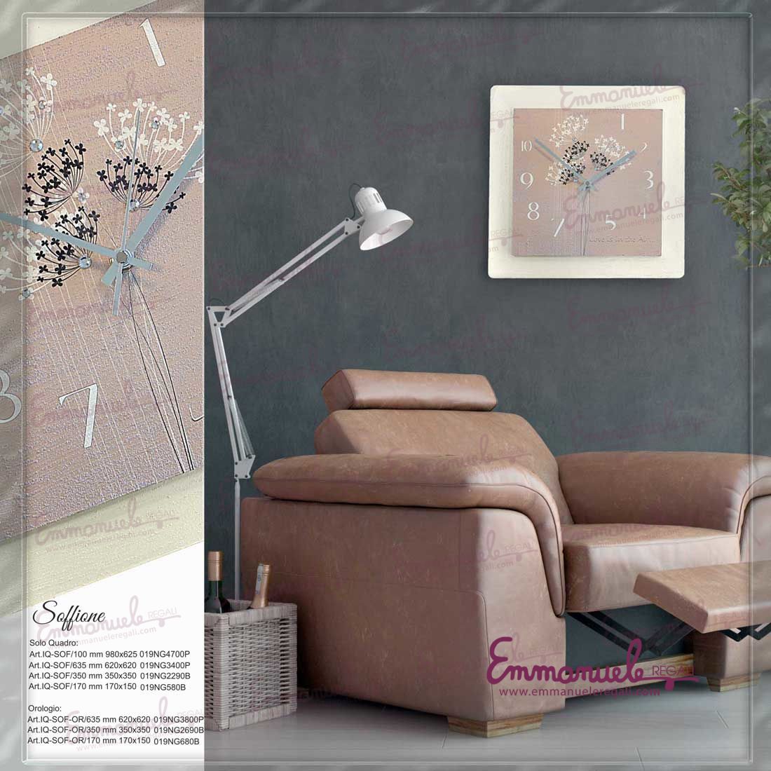 La serie "Soffione" collezione di Negò 2019, è una linea di Quadri realizzata in legno. Il quadro è composto da una base a cui si sovrappone una base in legno raffigurante il fiore soffione. ll giorno in cui festeggiamo un’occasione speciale è un giorno che vogliamo ricordare per sempre. Gli articoli sono realizzati interamente a mano in Italia. Tutta la linea è completa di astuccio originale e certificato di autenticità Negò 2019.