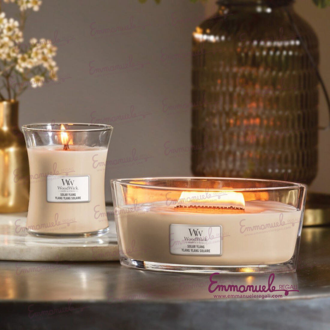 Le candele a forma ellittica WoodWick presentano un'apertura più ampia per una pozza di cera completamente fusa che produce una fragranza più intensa e consistente, infondendo nella vostra casa profumazioni sofisticate con il dolce crepitio di uno stoppino in legno naturale brevettato per riprodurre il suono di un fuoco scoppiettante, gli stoppini sono realizzati a mano per ogni singola candela. Il caratteristico crepitio e la sinuosa fiamma danzante delle candele di forma ellittica WoodWick sono frutto della tecnologia brevettata HEARTHWICK Flame.