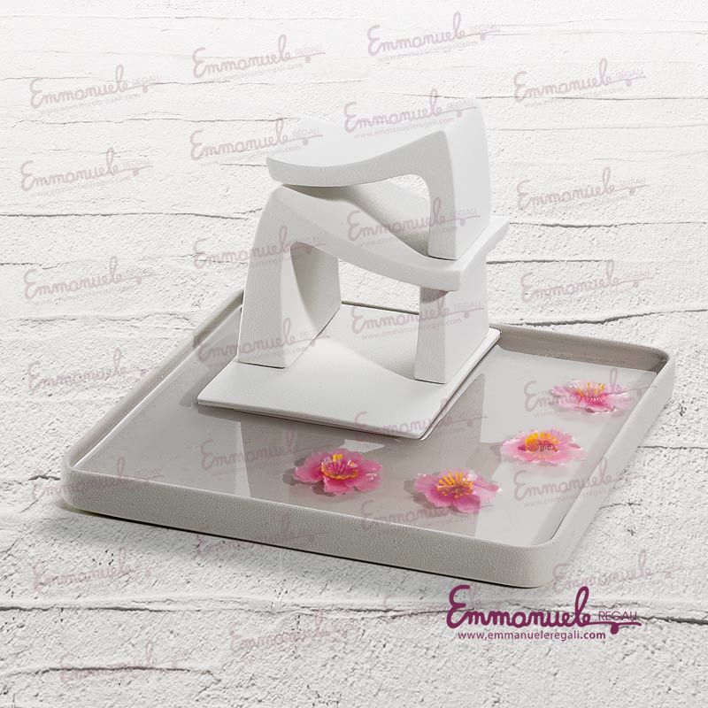 La scultura è proposta nell'abbinamento di colori grigio e latte.