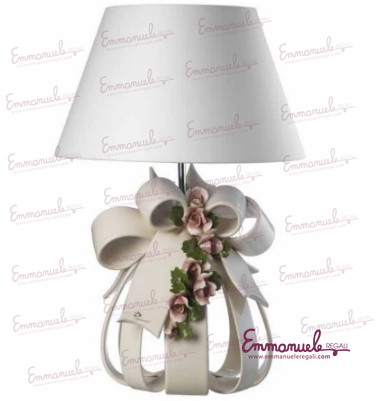 Sfera grande lampada con fiori rosa in capodimonte-Gli Alberelli