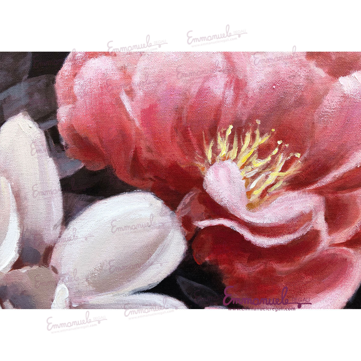 Peonie 1 è un quadro di peonie dipinto a mano su tela di cotone. Ogni pezzo è unico e per realizzarlo vengono utilizzati i migliori acrilici che ne garantiscono qualità,bellezza e resistenza nel tempo. L'opera, con telaio interno in legno è già pronta da appendere.