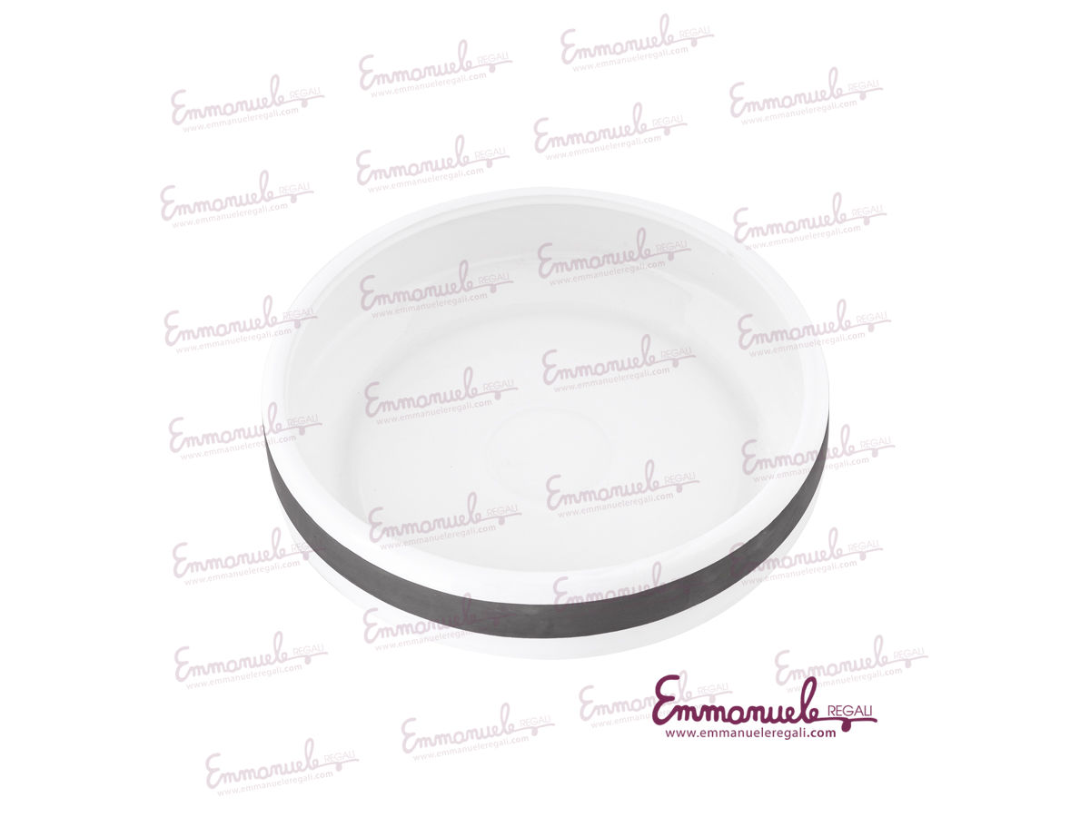 Centrotavola Samsara in ceramica bianca smaltata con fascia nera by Casapinto.