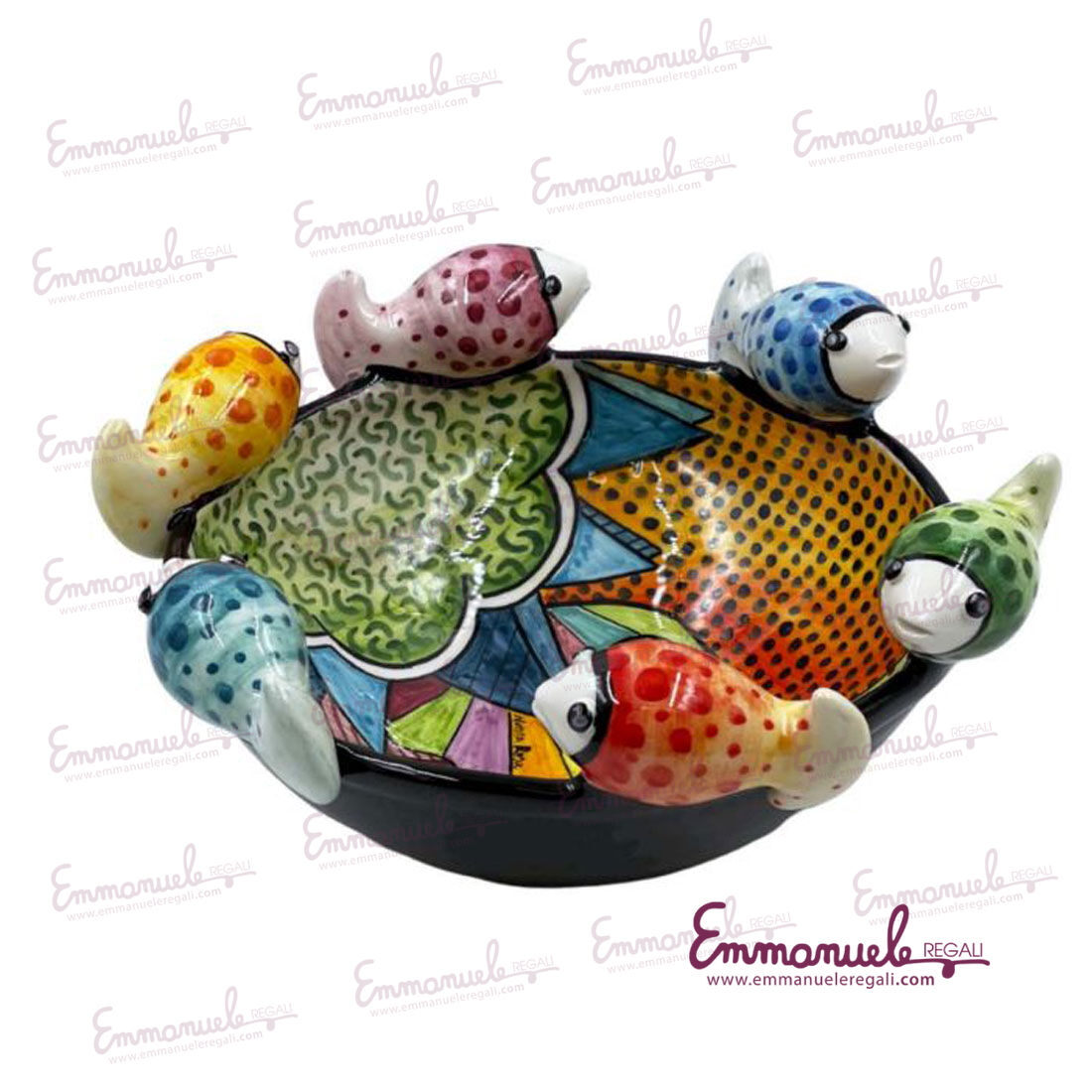 La ciotola con pesci come tutti gli altri articoli di "Le Ceramiche di Nonna Rosa" sono interamente realizzati a mano da maestri artigiani siciliani.