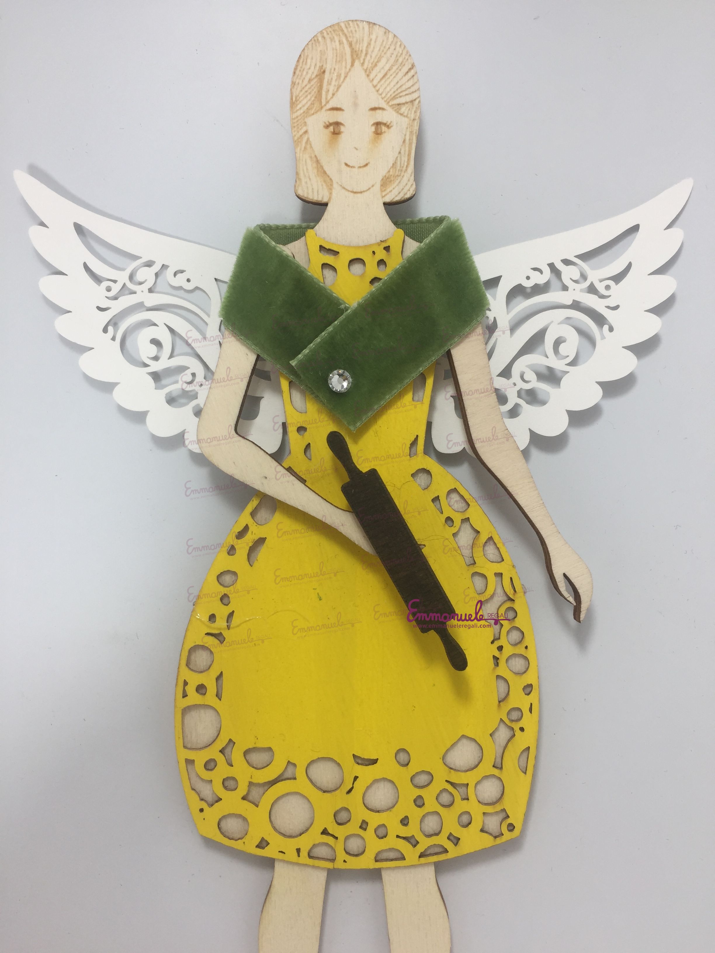 Il quadretto di SD Laser è un pannello di legno laccato bianco con applicazione, il soggetto è realizzato in legno mentre le ali sono realizzate in carta, entrambe con taglio laser.