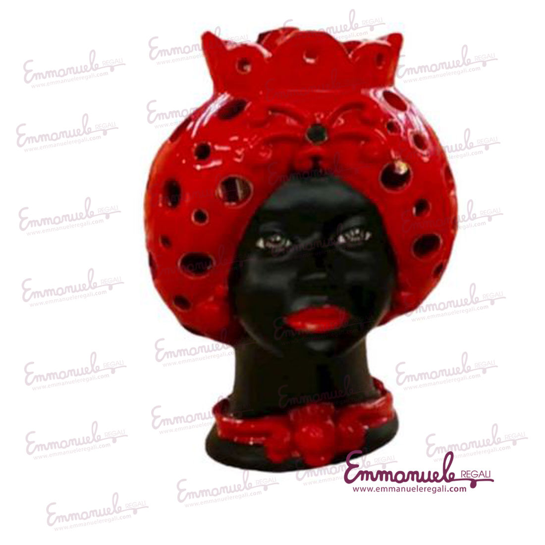 La Testa di moro gnomi traforato a lume lei , come tutti gli altri articoli di "Le Ceramiche di Nonna Rosa" sono interamente realizzati a mano da maestri artigiani siciliani.