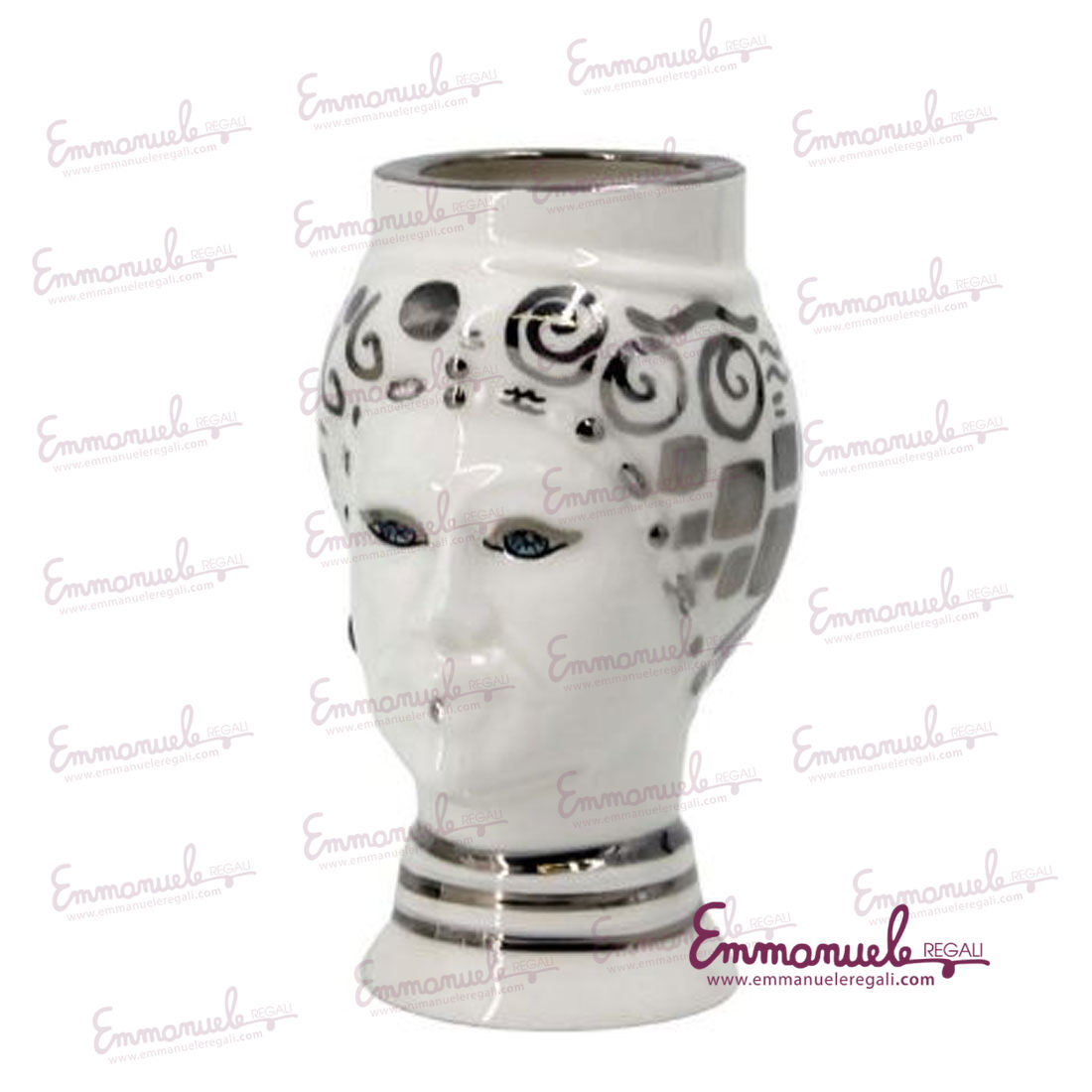 Le teste di moro decorate con platino come tutti gli altri articoli di "Le Ceramiche di Nonna Rosa" sono interamente realizzati a mano da maestri artigiani siciliani.