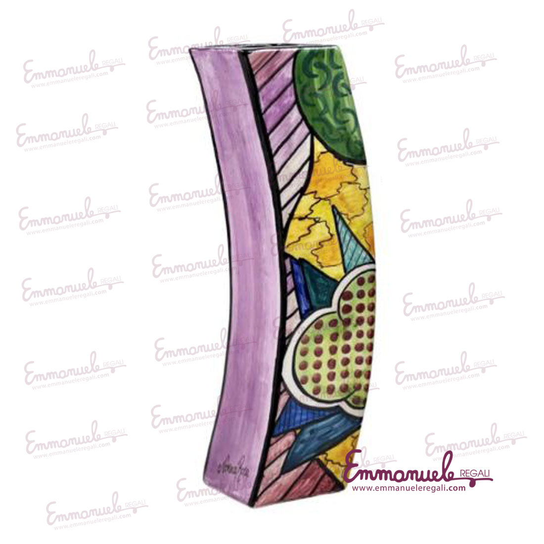 Il vaso curvo come tutti gli altri articoli di "Le Ceramiche di Nonna Rosa" sono interamente realizzati a mano da maestri artigiani siciliani.
