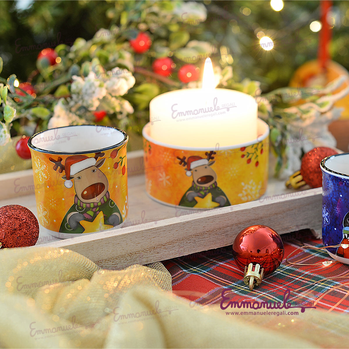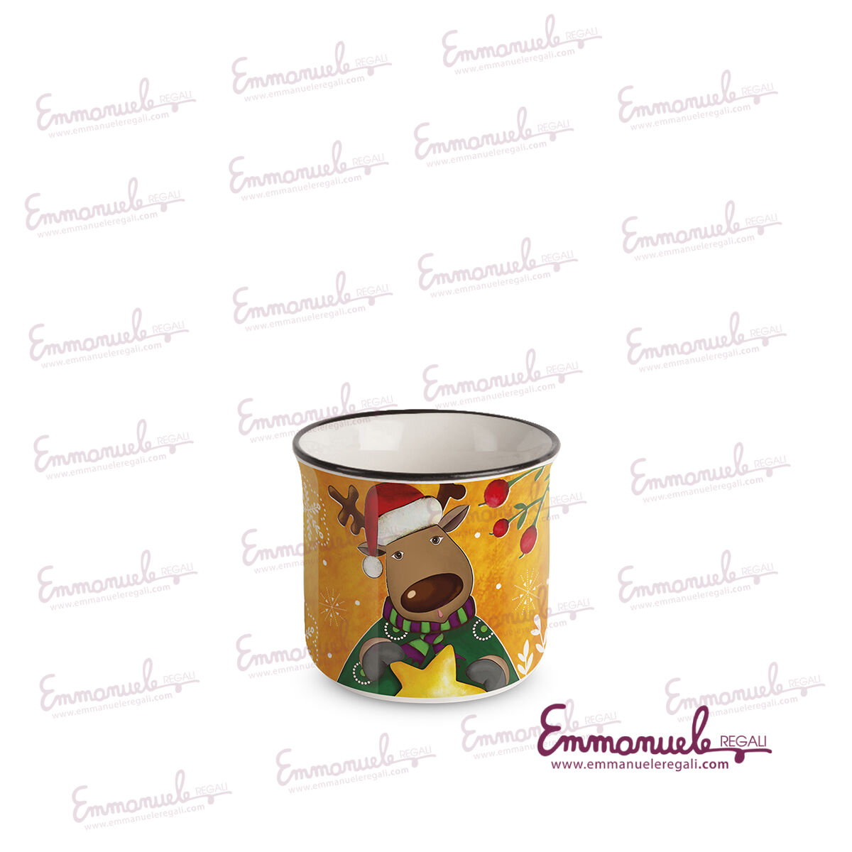 Bicchierino natalizio con decoro Renna, può essere utilizzato come tazzina da caffè, segnaposto o portastuzzicadenti.