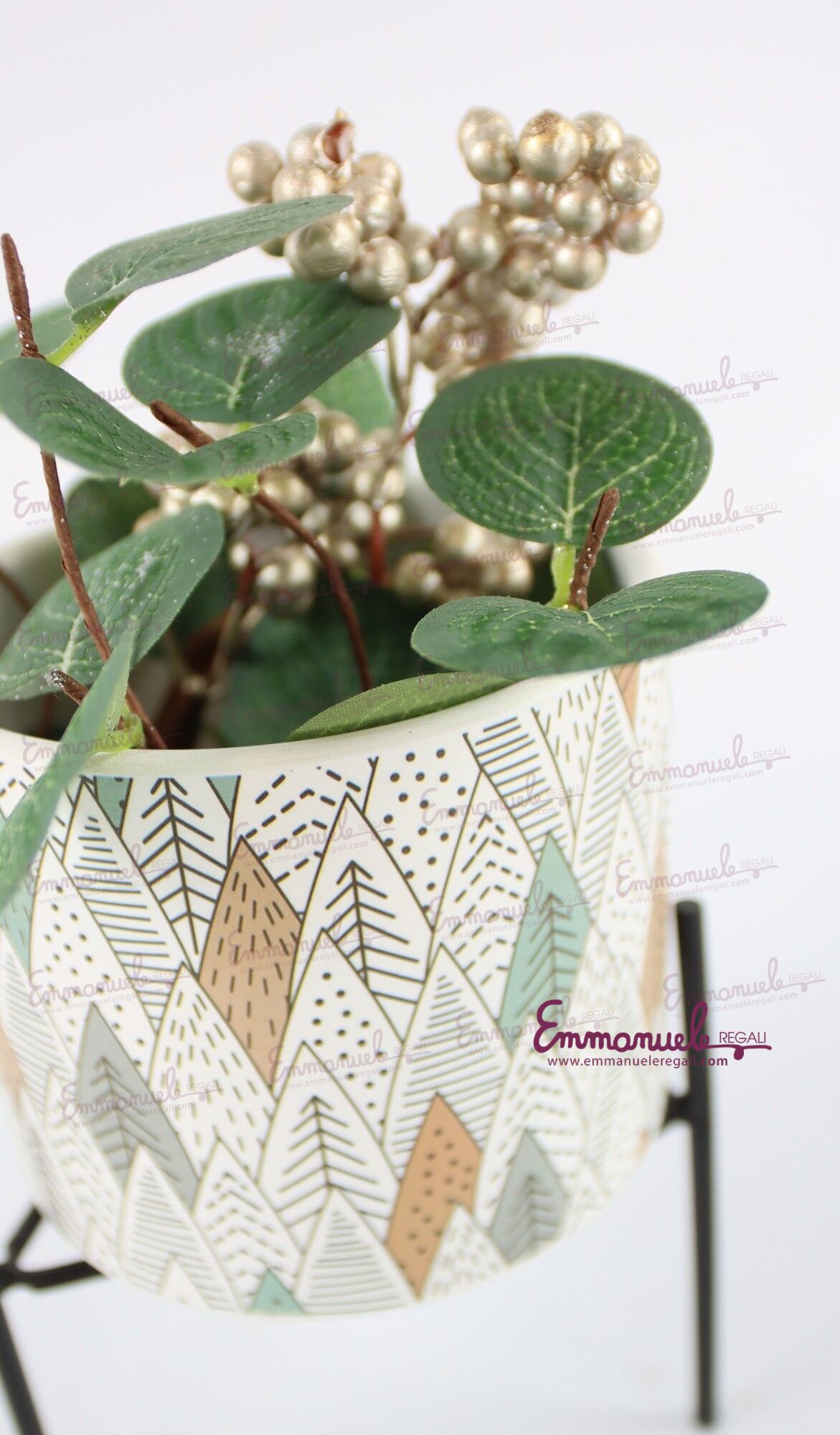 Vasetto portapianta Bosco in ceramica di Hoff Interieur con base in metallo.