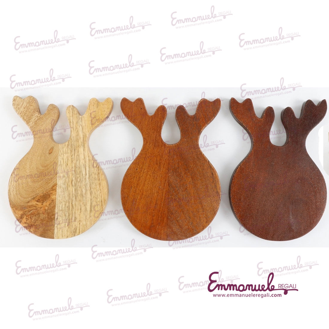 Sottobicchiere o mini tagliere in legno a forma di renna, in tre diverse gradazioni.