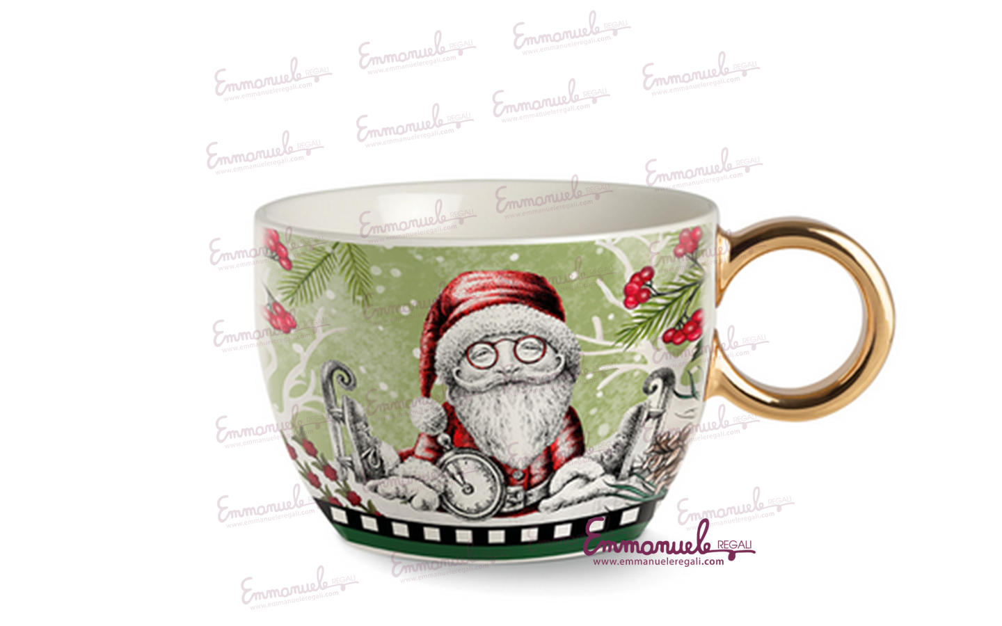 La tazza natalizia con Babbo natale della collezione Egan è stata realizzata in con new bone China è compresa di sua scatola logata Egan natalizia, questa Tazza è perfetta per un'idea regalo originale.